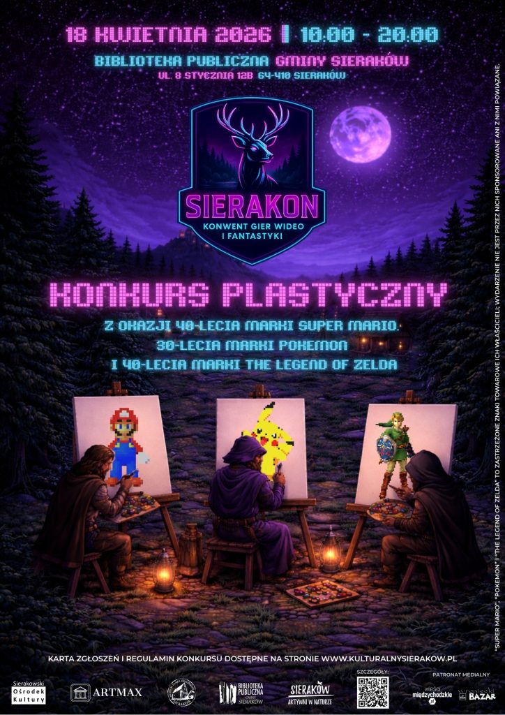 Hej, Sieraków! Hej, Wielkopolska! Już 18 kwietnia 2026 roku otworzymy portal do świata gier wideo i szeroko pojętej fantastyki – to właśnie wtedy w Bibliotece Publicznej Gminy Sieraków odbędzie się konwent gier wideo i fantastyki – SIERAKON!